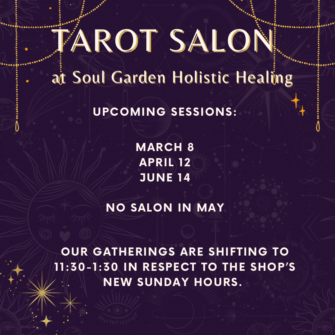 Join us for our monthly Tarot Salon, hosted by Catherine LaSasso and Lisa DiDio. Their combined 40+ years of experience brings a blend of knowledge, guidance, and fun to the table, and they're here to actively coach you on request. Enjoy astrological updates, a brief teaching or workshopping exercise, then swap practice readings with other participants.