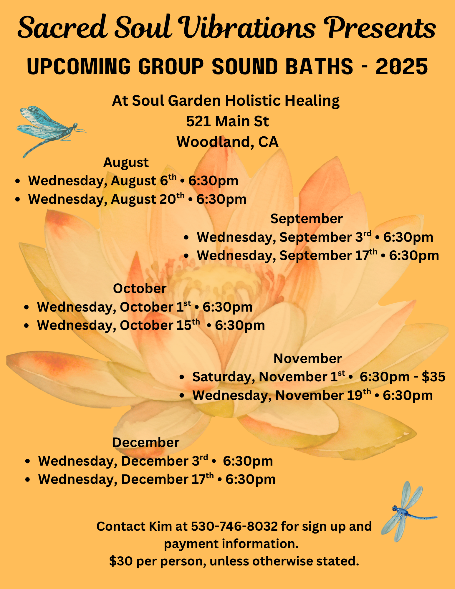 Upcoming Sound Baths with Kim from Sacred Soul Vibrations