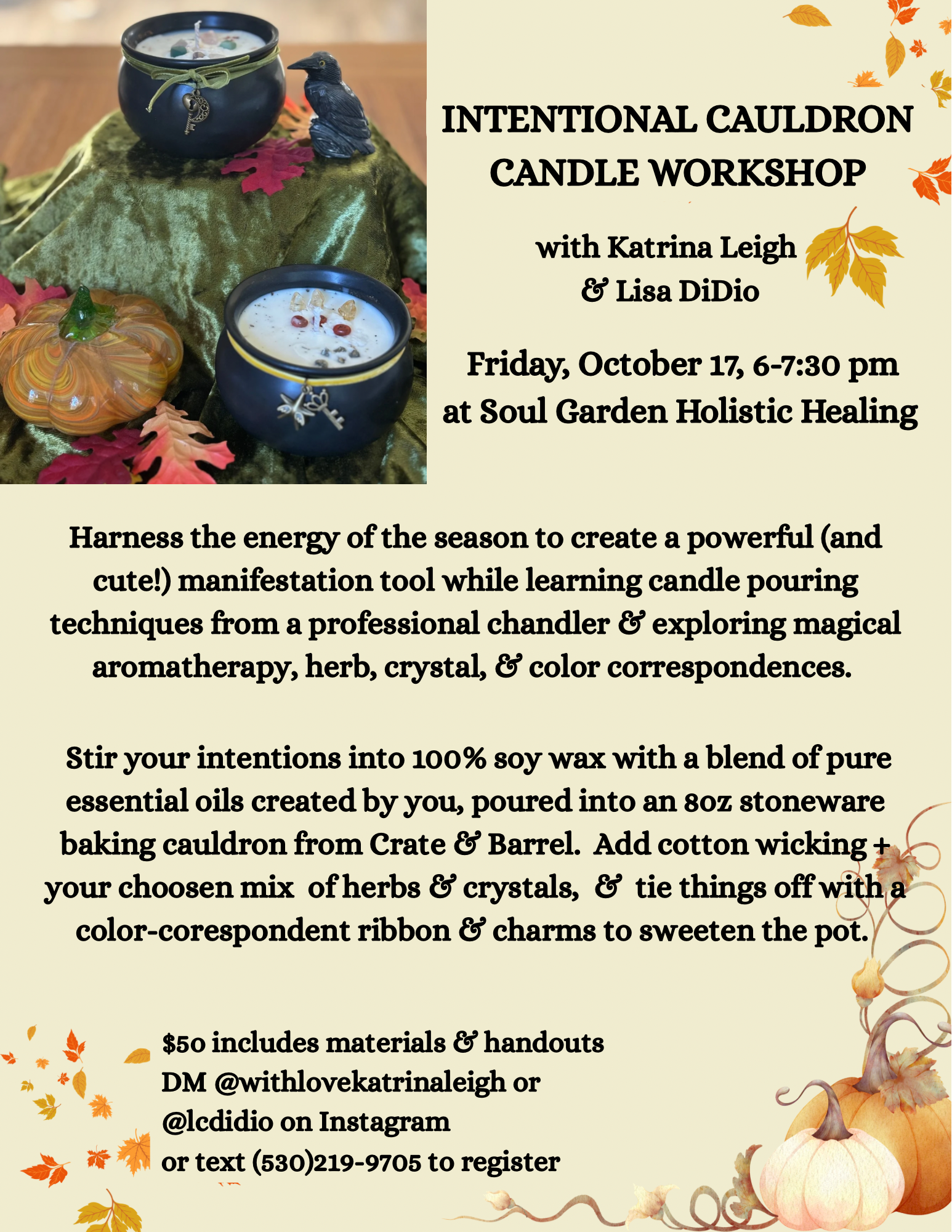 Friday, October 17, 6-7:30 pm at Soul Garden Holistic Healing